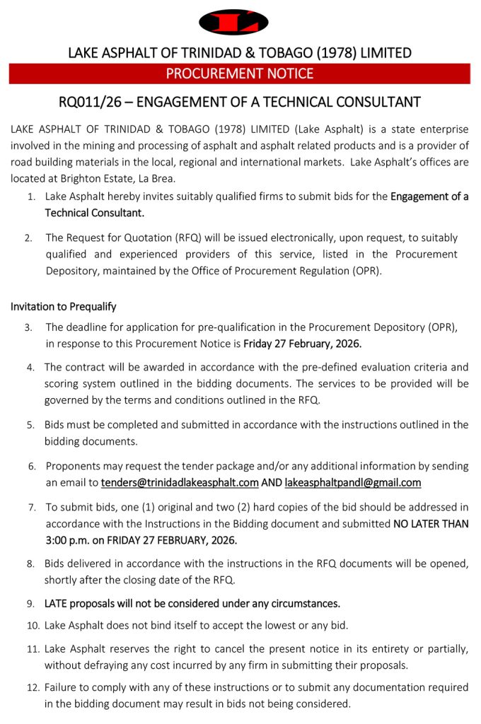 PROCUREMENT NOTICE – RQ003/26 – PROVISION OF SAFETY PROTECTIVE CLOTHING – COVERALLS
